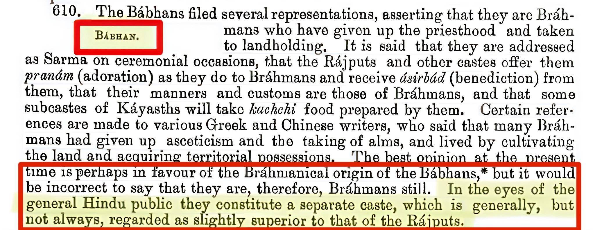 Remarks: In the 1891 census, BABHANS/BHUMIHARS were classified with Tyagis, Rajputs, Jats and Brahmins in Bihar and UP. Vaishyas and Shudras were classified separately, among whom many castes were classified but NOT BABHANS/BHUMIHARS.