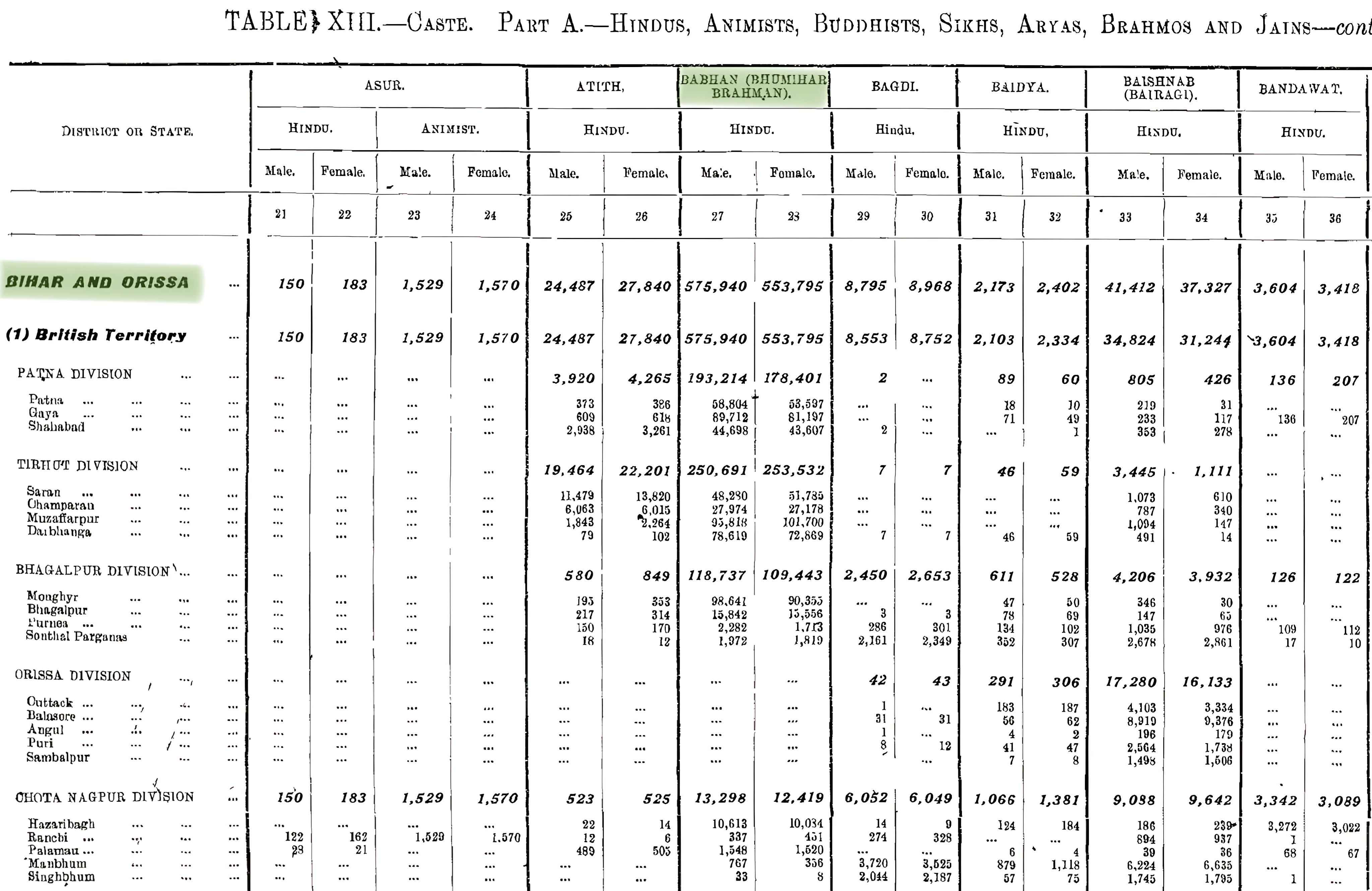 Categorisation of Bhumihars: Same as 1872.
